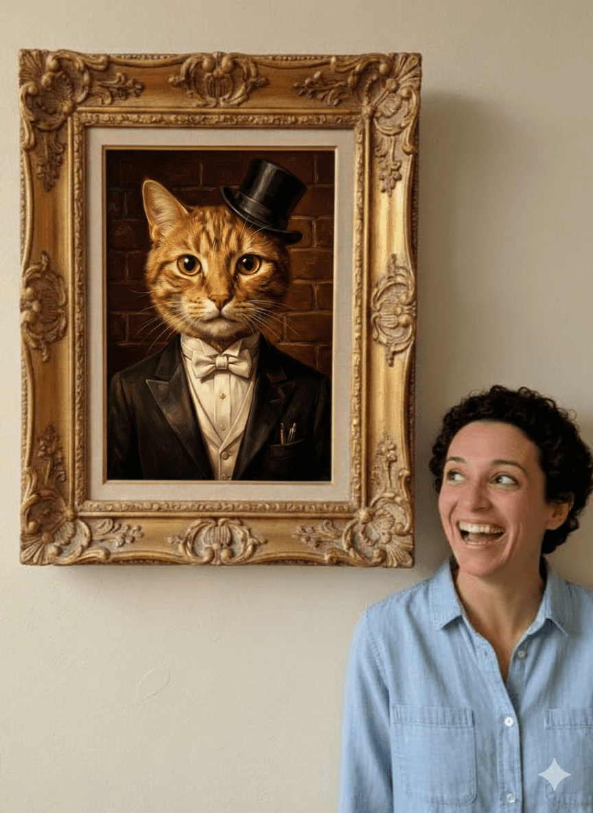 Dylan, your tuxedo cat’s top hat and hard black-gold edges are a brilliant flex—you’re bold.