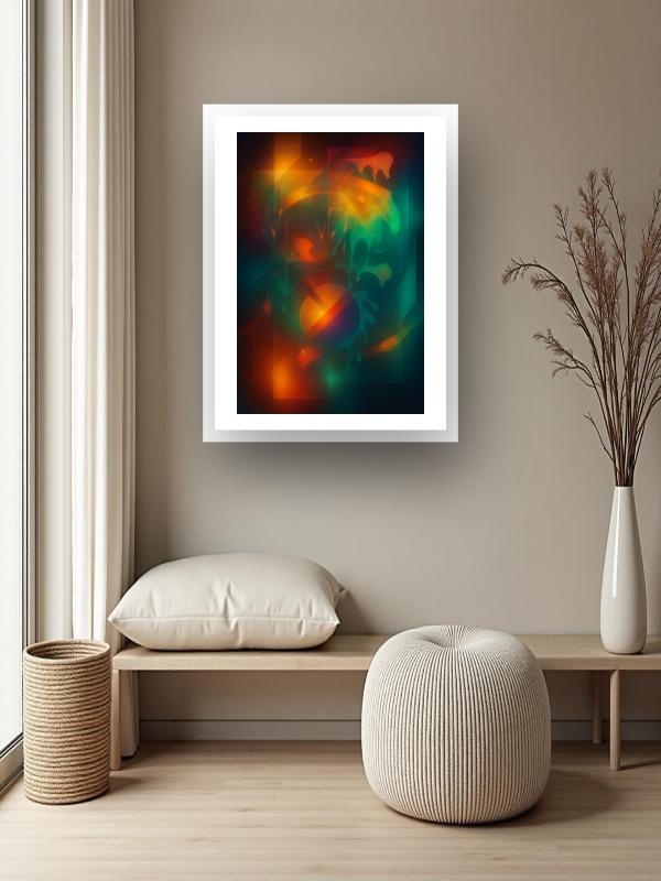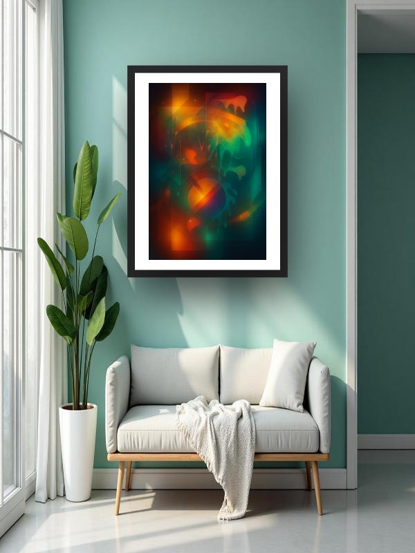 A surge of molten orange and gold rips through deep teal shadows, crackling with heat and cool in every stroke. Sharp lines slice across the chaos while liquid drips streak and pool, refusing to settle. Light flashes and bleeds, electrifying the canvas with restless energy that pulls you in. This painting hits you in the chest—bold, alive, impossible to ignore.
